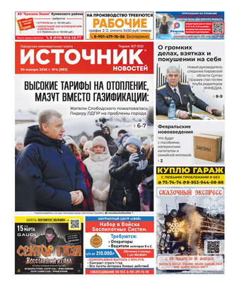 Еженедельная газета «Источник новостей» – одно из самых популярных изданий в Кировской области. Основные темы: информация о событиях в регионе, политика, культура, социальные проблемы и многое другое. В 2022 году газета признана «СМИ года» в Кировской области. Еженедельник рассчитан на широкий круг читателей.