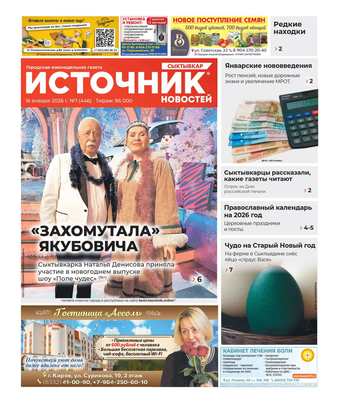 Еженедельная газета «Источник новостей» – одно из самых популярных изданий в Республике Коми. Основные темы: информация о событиях в регионе, политика, культура, социальные проблемы и многое другое. Еженедельник рассчитан на широкий круг читателей.