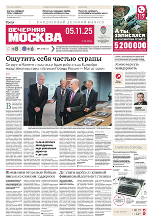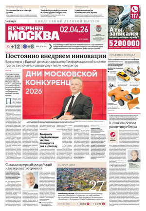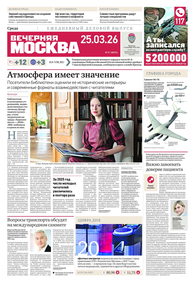 «Вечерняя Москва» — ежедневная российская вечерняя газета, старейшее из вечерних изданий в России, учрежденное в 1923 году. Выходит пять дней в неделю, кроме субботы и воскресенья. Отличается тем, что рассказывает о событиях еще не завершившегося дня. Оперативно освещает хронику и особенности жизни Москвы, охватывает все слои общества и большинство профессиональных и возрастных групп читателей.Издание представлено тремя выпусками – утренним ежедневным, вечерним (выходит три раза в неделю), еженедельным (выходит по четвергам).