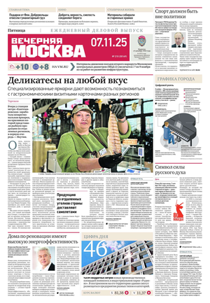 «Вечерняя Москва» — ежедневная российская вечерняя газета, старейшее из вечерних изданий в России, учрежденное в 1923 году. Выходит пять дней в неделю, кроме субботы и воскресенья. Отличается тем, что рассказывает о событиях еще не завершившегося дня. Оперативно освещает хронику и особенности жизни Москвы, охватывает все слои общества и большинство профессиональных и возрастных групп читателей.Издание представлено тремя выпусками – утренним ежедневным, вечерним (выходит три раза в неделю), еженедельным (выходит по четвергам).