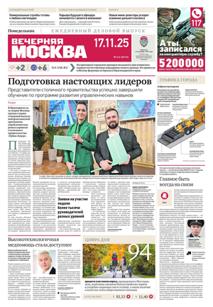 «Вечерняя Москва» — ежедневная российская вечерняя газета, старейшее из вечерних изданий в России, учрежденное в 1923 году. Выходит пять дней в неделю, кроме субботы и воскресенья. Отличается тем, что рассказывает о событиях еще не завершившегося дня. Оперативно освещает хронику и особенности жизни Москвы, охватывает все слои общества и большинство профессиональных и возрастных групп читателей.Издание представлено тремя выпусками – утренним ежедневным, вечерним (выходит три раза в неделю), еженедельным (выходит по четвергам).