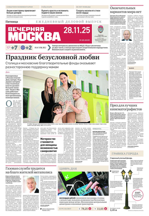 «Вечерняя Москва» — ежедневная российская вечерняя газета, старейшее из вечерних изданий в России, учрежденное в 1923 году. Выходит пять дней в неделю, кроме субботы и воскресенья. Отличается тем, что рассказывает о событиях еще не завершившегося дня. Оперативно освещает хронику и особенности жизни Москвы, охватывает все слои общества и большинство профессиональных и возрастных групп читателей.Издание представлено тремя выпусками – утренним ежедневным, вечерним (выходит три раза в неделю), еженедельным (выходит по четвергам).