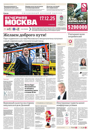 «Вечерняя Москва» — ежедневная российская вечерняя газета, старейшее из вечерних изданий в России, учрежденное в 1923 году. Выходит пять дней в неделю, кроме субботы и воскресенья. Отличается тем, что рассказывает о событиях еще не завершившегося дня. Оперативно освещает хронику и особенности жизни Москвы, охватывает все слои общества и большинство профессиональных и возрастных групп читателей.Издание представлено тремя выпусками – утренним ежедневным, вечерним (выходит три раза в неделю), еженедельным (выходит по четвергам).