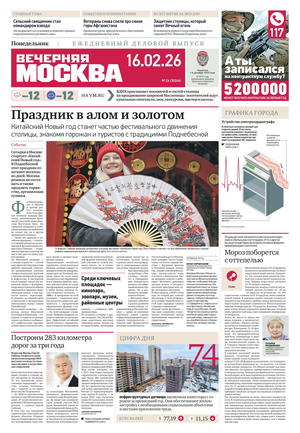 «Вечерняя Москва» — ежедневная российская вечерняя газета, старейшее из вечерних изданий в России, учрежденное в 1923 году. Выходит пять дней в неделю, кроме субботы и воскресенья. Отличается тем, что рассказывает о событиях еще не завершившегося дня. Оперативно освещает хронику и особенности жизни Москвы, охватывает все слои общества и большинство профессиональных и возрастных групп читателей.Издание представлено тремя выпусками – утренним ежедневным, вечерним (выходит три раза в неделю), еженедельным (выходит по четвергам).