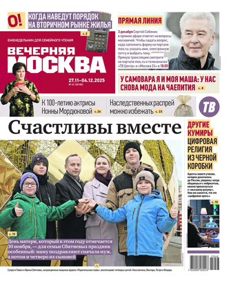 Еженедельный выпуск «Вечерней Москвы» — это значимые события недели, афиша города, новости из сферы отдыха и развлечений, телепрограмма с анонсами и комментариями, авторские колонки журналистов и авторитетные мнения экспертов, детская страничка, специальная рубрика «Золушка», интересные репортажи о необычных судьбах московских жителей, постоянные конкурсы и викторины.