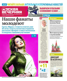 Еженедельный выпуск «Вечерней Москвы» — это значимые события недели, афиша города, новости из сферы отдыха и развлечений, телепрограмма с анонсами и комментариями, авторские колонки журналистов и авторитетные мнения экспертов, детская страничка, специальная рубрика «Золушка», интересные репортажи о необычных судьбах московских жителей, постоянные конкурсы и викторины.