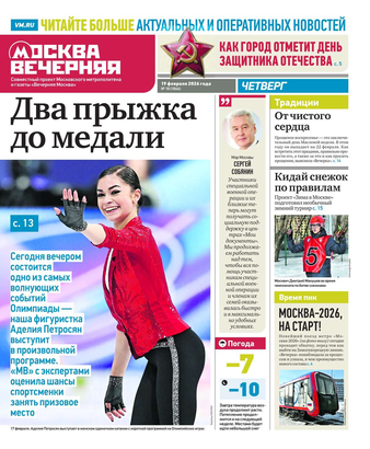 «Вечерняя Москва» — ежедневная российская вечерняя газета, старейшее из вечерних изданий в России, учрежденное в 1923 году. Выходит пять дней в неделю, кроме субботы и воскресенья. Отличается тем, что рассказывает о событиях еще не завершившегося дня. Оперативно освещает хронику и особенности жизни Москвы, охватывает все слои общества и большинство профессиональных и возрастных групп читателей.Издание представлено тремя выпусками – утренним ежедневным, вечерним (выходит три раза в неделю), еженедельным (выходит по четвергам).