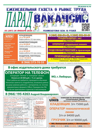ЕЖЕНЕДЕЛЬНАЯ ГАЗЕТА О РЫНКЕ ТРУДА ПАРАД ВАКАНСИЙ