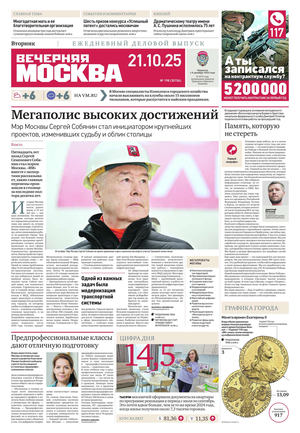 «Вечерняя Москва» — ежедневная российская вечерняя газета, старейшее из вечерних изданий в России, учрежденное в 1923 году. Выходит пять дней в неделю, кроме субботы и воскресенья. Отличается тем, что рассказывает о событиях еще не завершившегося дня. Оперативно освещает хронику и особенности жизни Москвы, охватывает все слои общества и большинство профессиональных и возрастных групп читателей.Издание представлено тремя выпусками – утренним ежедневным, вечерним (выходит три раза в неделю), еженедельным (выходит по четвергам).