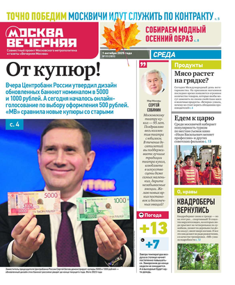 «Вечерняя Москва» — ежедневная российская вечерняя газета, старейшее из вечерних изданий в России, учрежденное в 1923 году. Выходит пять дней в неделю, кроме субботы и воскресенья. Отличается тем, что рассказывает о событиях еще не завершившегося дня. Оперативно освещает хронику и особенности жизни Москвы, охватывает все слои общества и большинство профессиональных и возрастных групп читателей.Издание представлено тремя выпусками – утренним ежедневным, вечерним (выходит три раза в неделю), еженедельным (выходит по четвергам).