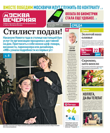 «Вечерняя Москва» — ежедневная российская вечерняя газета, старейшее из вечерних изданий в России, учрежденное в 1923 году. Выходит пять дней в неделю, кроме субботы и воскресенья. Отличается тем, что рассказывает о событиях еще не завершившегося дня. Оперативно освещает хронику и особенности жизни Москвы, охватывает все слои общества и большинство профессиональных и возрастных групп читателей.Издание представлено тремя выпусками – утренним ежедневным, вечерним (выходит три раза в неделю), еженедельным (выходит по четвергам).
