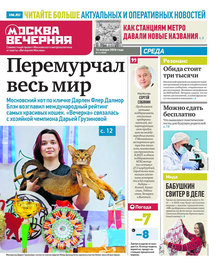 «Вечерняя Москва» — ежедневная российская вечерняя газета, старейшее из вечерних изданий в России, учрежденное в 1923 году. Выходит пять дней в неделю, кроме субботы и воскресенья. Отличается тем, что рассказывает о событиях еще не завершившегося дня. Оперативно освещает хронику и особенности жизни Москвы, охватывает все слои общества и большинство профессиональных и возрастных групп читателей.Издание представлено тремя выпусками – утренним ежедневным, вечерним (выходит три раза в неделю), еженедельным (выходит по четвергам).